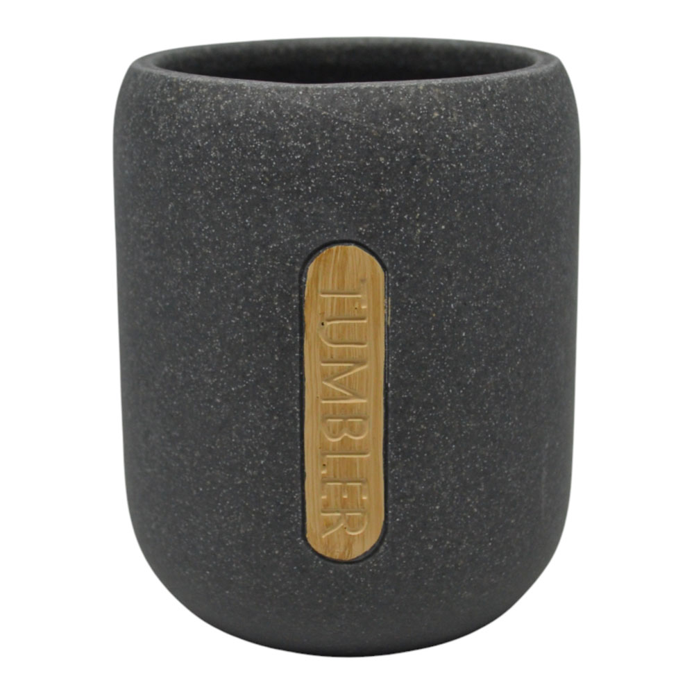 Ποτηροθήκη για οδοντόβουρτσες από ανθεκτικό πολυεστερικό υλικό με ελαφρώς ανάγλυφη, σαγρέ επιφάνεια που προσδίδει μοντέρνο χαρακτήρα. Διαθέτει πρακτικό μέγεθος για οδοντόβουρτσες ή αξεσουάρ, ενώ η ξύλινη λεπτομέρεια στο μπροστινό μέρος προσθέτει φυσική αισθητική. Ιδανική για καθημερινή χρήση, συνδυάζει λειτουργικότητα και κομψότητα σε κάθε μπάνιο.