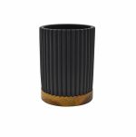 Ποτηροθήκη για οδοντόβουρτσες πολυεστερική σε μαύρο χρώμα με διακόσμηση ανάγλυφες γραμμές και ξύλο ακακίας στο κάτω μέρος. Αξεσουάρ μπάνιου εξαιρετικής ποιότητας με μοντέρνο και κομψό σχεδιασμό. Συνδυάστε τα ιδανικά με αντικείμενα της υπόλοιπης σειράς.