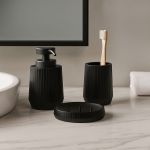 Ποτηροθήκη για οδοντόβουρτσες πολυεστερική σε μαύρο ματ χρώμα με κάθετη ριγωτή διακόσμηση. Ο μοντέρνος σχεδιασμός της προσφέρει μίνιμαλ αισθητική και ταιριάζει ιδανικά σε κάθε μπάνιο.