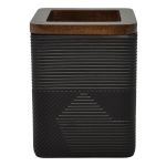 Ποτηροθήκη για οδοντόβουρτσες πολυεστερική σε μαύρο χρώμα με ανάγλυφα γεωμετρικά μοτίβα και ξύλο ακακίας στο πάνω μέρος. Αξεσουάρ μπάνιου εξαιρετικής ποιότητας με μοντέρνο και κομψό σχεδιασμό.