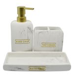 Σαπουνοθήκη-πιατάκι πολυεστερικό, διακόσμηση εφέ άσπρο μάρμαρο και χρυσή επιγραφή. Αξεσουάρ μπάνιου εξαιρετικής ποιότητας με μοντέρνο και κομψό σχεδιασμό. Συνδυάστε τα ιδανικά με αντικείμενα της υπόλοιπης σειράς.
