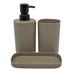 Σετ μπάνιου 3 τεμαχίων το οποίο αποτελείται από dispenser για υγρό σαπούνι, ποτηροθήκη και σαπουνοθήση από πλαστικό υψηλής ποιότητας σε taupe χρώμα. Διαστάσεις dispenser 7,3x7,3x17,5εκ., ποτηροθήκη 7,3x7,3x11εκ. και σαπουνοθήκη 15x7,3x1,5εκ.