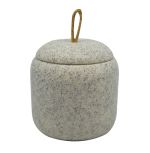 Δοχείο με καπάκι για βαμβάκι ή μπατονέτες, πολυεστερικό και εφέ γκρι πέτρας. Αξεσουάρ μπάνιου εξαιρετικής ποιότητας με μοντέρνο και κομψό σχεδιασμό. Συνδυάστε τα ιδανικά με αντικείμενα της υπόλοιπης σειράς.
