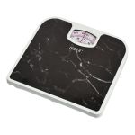 Ζυγαριά μπάνιου μηχανική με μέγιστο βάρος μέτρησης 130kg και διακόσμηση εφέ μαύρο μάρμαρο.