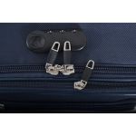 Βαλίτσα καμπίνας υφασμάτινη με προδιαγραφές για χειραποσκευή σε αεροπλάνο. Διαθέτει διπλό φερμουάρ για επέκταση του πλάτους, εξωτερικές θήκες που κλείνουν και αυτές με φερμουάρ, τηλεσκοπικό χερούλι για άνετη χρήση και κλειδαριά για ασφάλεια και προστασία.