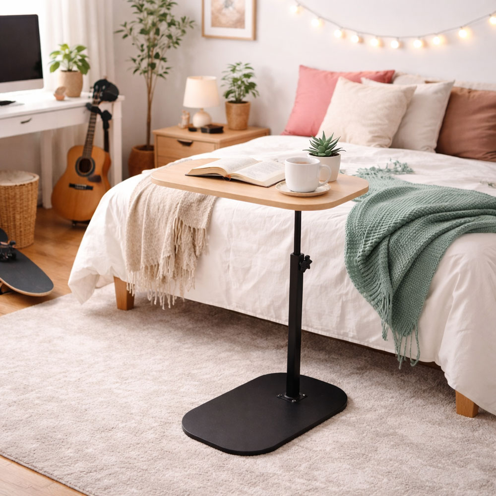 Τηλεσκοπικό τραπέζι με ρυθμιζόμενο ύψος από 48,5 έως 75 εκ, διαθέτει ανθεκτικό μεταλλικό μαύρο σκελετό με ηλεκτροστατική βαφή και ξύλινη επιφάνεια σε φυσικό χρώμα, προσφέροντας σταθερότητα και άνεση στη χρήση. Ιδανικό για εργασία, διάβασμα ή χρήση laptop στο σπίτι ή στο γραφείο.