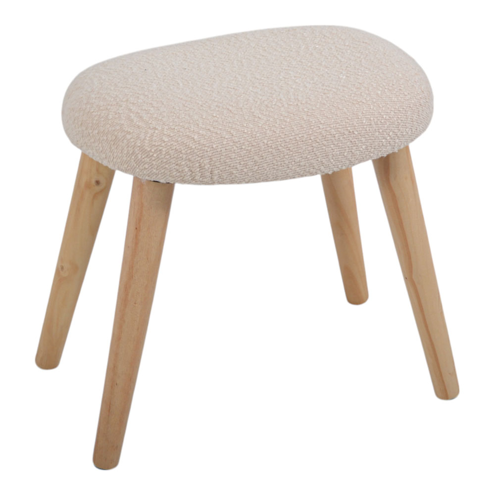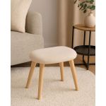 Σκαμπό με υφασμάτινο κάθισμα σε μπεζ απόχρωση και ξύλινα πόδια σε φυσικό χρώμα. Ο συνδυασμός της ανάγλυφης υφής με το λιτό design προσφέρει κομψότητα ταιριάζοντας σε κάθε σαλόνι, υπνοδωμάτιο ή γραφείο. Ιδανικό ως βοηθητικό κάθισμα ή υποπόδιο.