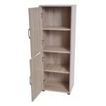 Ξύλινο ντουλάπι αποθήκευσης το οποίο προσφέρει πρακτικές λύσεις οργάνωσης για κάθε χώρο. Διαθέτει 4 ευρύχωρα ράφια, ιδανικά για την αποθήκευση ρούχων ή άλλων αντικειμένων. Οι πόρτες μπορούν να τοποθετηθούν με αριστερό ή δεξί άνοιγμα.