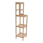 Ραφιέρα αποθήκευσης από φυσικό μπαμπού με 5 επίπεδα, ιδανική για οργάνωση σε μπάνιο, κουζίνα ή υπνοδωμάτιο. Ο ανοιχτός σχεδιασμός με ξύλινες σχάρες επιτρέπει τον καλό αερισμό, ενώ το φυσικό υλικό προσφέρει ζεστασιά και στυλ στον χώρο.