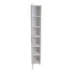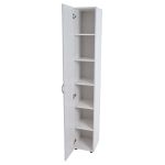 Ξύλινη στήλη με ράφια κατασκευασμένη από MDF και Μελαμίνη , ιδανική για την οργάνωση και αποθήκευση αντικειμένων όπως καθαριστικά, πετσέτες ή καλλυντικά. Η πόρτα μπορεί να τοποθετηθεί με αριστερό ή δεξί άνοιγμα ανάλογα τις ανάγκες του χώρου σας.