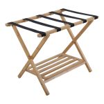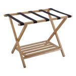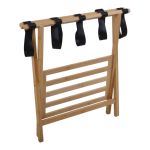 Βάση για βαλίτσες πτυσσόμενη, κατασκευασμένη από ξύλο μπαμπού σε φυσική απόχρωση.Διαθέτει ράφι για τοποθέτηση παπουτσιών ή μικρότερων αποσκευών,καθώς και πέντε μαύρους ιμάντες.Αποτελεί ιδανική λύση για δωμάτια ξενοδοχείου χάρη στην ανθεκτική κατασκευή της