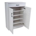 Παπουτσοθήκη-ντουλάπι ξύλινο με συρτάρι υψηλής ποιότητας, ιδανική για να τακτοποιήσετε κ να προστατέψετε τα παπούτσια σας. Διαθέτει δύο πόρτες και έχει τέσσερα ράφια που δημιουργούν πέντε ευρύχωρους αποθηκευτικούς χώρους.