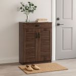 Παπουτσοθήκη-ντουλάπι ξύλινο με συρτάρι υψηλής ποιότητας, ιδανική για να τακτοποιήσετε κ να προστατέψετε τα παπούτσια σας. Διαθέτει δύο πόρτες και έχει τέσσερα ράφια που δημιουργούν πέντε ευρύχωρους αποθηκευτικούς χώρους.