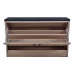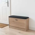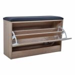 Παπουτσοθήκη ξύλινη με ένα διπλό ράφι ιδανική για να τακτοποιήσετε και να προστατέψετε τα παπούτσια σας. Διαθέτει ενσωματωμένο μαύρο μαξιλάρι και μπορεί να χρησιμοποιηθεί και ως σκαμπό. Αποτελεί πρακτική λύση για έπιπλο εισόδου.