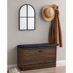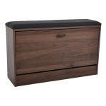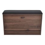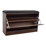 Παπουτσοθήκη ξύλινη με ένα διπλό ράφι ιδανική για να τακτοποιήσετε και να προστατέψετε τα παπούτσια σας. Διαθέτει ενσωματωμένο μαύρο μαξιλάρι και μπορεί να χρησιμοποιηθεί και ως σκαμπό. Αποτελεί πρακτική λύση για έπιπλο εισόδου.