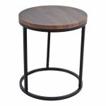 Στρογγυλό τραπεζάκι με ξύλινη επιφάνεια και μεταλλική βάση. Η επιφάνεια από ανθεκτικό ξύλο προσφέρει φυσική αισθητική και κομψότητα, ενώ η μαύρη μεταλλική βάση χαρίζει σταθερότητα και βιομηχανικό στυλ. Ιδανικό για κάθε χώρο.