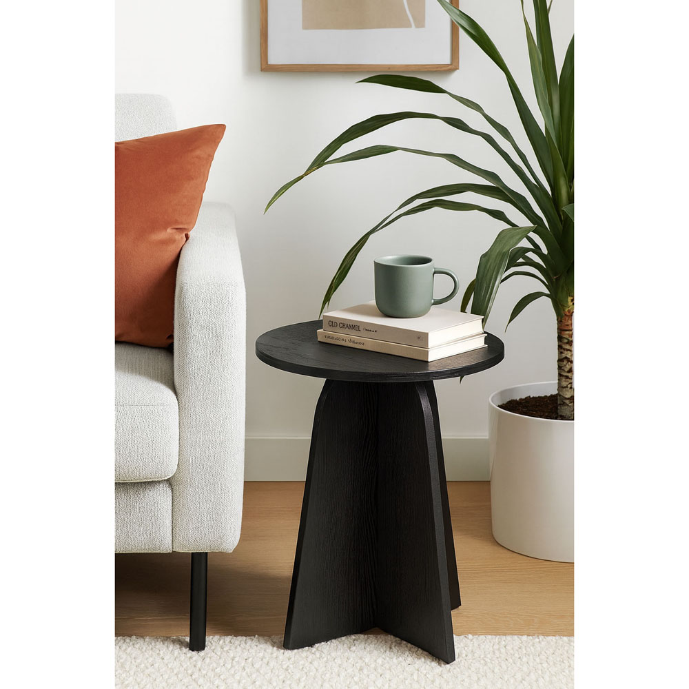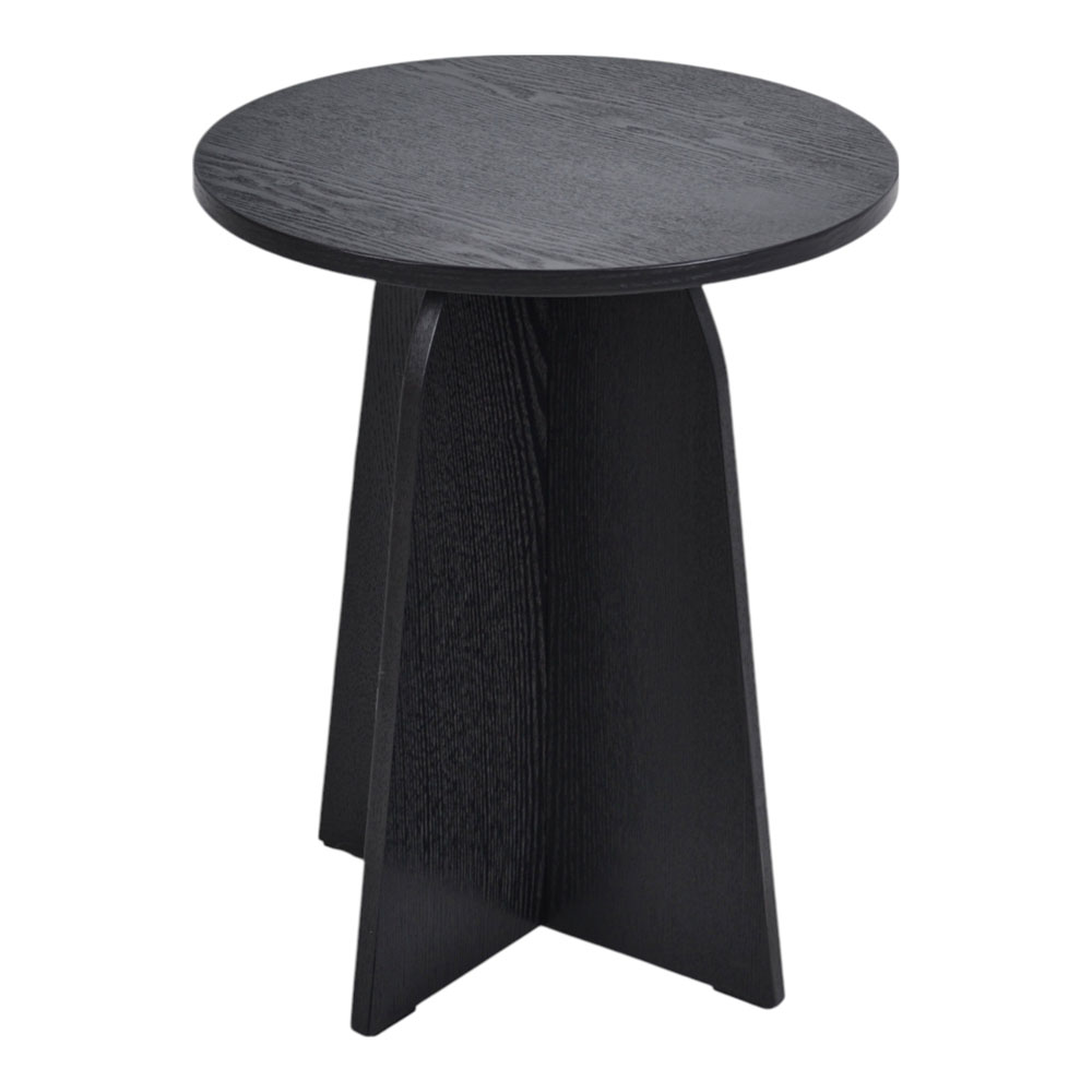 Βοηθητικό τραπεζάκι στρογγυλό σε μαύρο χρώμα, κατασκευασμένο από ξύλο με φυσική όψη νερών. Ο λιτός σχεδιασμός του με σταθερή βάση συνδυάζει κομψότητα και αντοχή. Ιδανικό για σαλόνι, υπνοδωμάτιο ή γραφείο, ταιριάζει σε μοντέρνα και κλασική διακόσμηση.