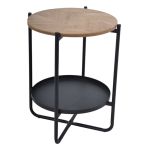 Βοηθητικό τραπεζάκι στρογγυλό με μοντέρνο σχεδιασμό. Διαθέτει επιφάνεια από ξύλο με φυσική όψη σε μοτίβο ψαροκόκαλο και μαύρη μεταλλική βάση με δεύτερο ράφι για επιπλέον λειτουργικότητα. Ιδανικό για το σαλόνι, το υπνοδωμάτιο ή το γραφείο.