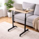 Τηλεσκοπικό τραπέζι με ρυθμιζόμενο ύψος από 65 έως 89 εκ και ρόδες για εύκολη μετακίνηση. Διαθέτει ανθεκτικό μεταλλικό μαύρο σκελετό με ηλεκτροστατική βαφή και ξύλινη επιφάνεια σε φυσικό χρώμα, προσφέροντας σταθερότητα και άνεση στη χρήση. Το ύψος ρυθμίζεται ώστε να προσαρμόζεται στις ανάγκες σας, ενώ οι ρόδες επιτρέπουν εύκολη μετακίνηση στον χώρο. Ιδανικό για εργασία, διάβασμα ή χρήση laptop στο σπίτι ή στο γραφείο.