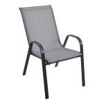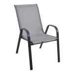 Καρέκλα εξωτερικού χώρου με γκρι ανθρακί ματ μεταλλικό σκελετό και γκρι textilene ύφασμα 2x1. Όταν δεν χρησιμοποιείται, μπορεί να στοιβαχτεί η μία πάνω στην άλλη, εξοικονομώντας χώρο. Συνδυάστε την με το ορθογώνιο μεταλλικό τραπέζι της ίδιας σειράς.