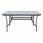 Τραπέζι κήπου με ανθρακί ματ μεταλλικό σκελετό και water wave γυάλινη επιφάνεια tempered 5mm. Διάσταση σωλήνα ποδιών 36x15x0,9mm.Υψηλής ποιότητας μεταλλικό τραπέζι εξωτερικού χώρου στιβαρής κατασκευής και κομψού σχεδιασμού.