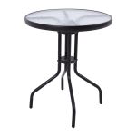 ΤΡΑΠΕΖΙ ΜΕΤΑΛΛΙΚΟ ΣΤΡΟΓΓΥΛΟ ΣΕ ΜΑΥΡΟ ΜΑΤ ΧΡΩΜΑ ΜΕ ΓΥΑΛΙΝΗ ΕΠΙΦΑΝΕΙΑ 60x60x70εκ ANKOR