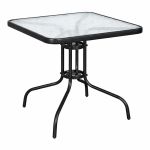 Τραπέζι τετράγωνο εξωτερικού χώρου με σκούρο καφέ ματ μεταλλικό σκελετό, σχεδιασμένο για αντοχή και σταθερότητα. Η επιφάνειά του είναι από γυαλί tempered 5mm με σχέδιο water wave, που προσφέρει ιδιαίτερη αισθητική και αυξημένη ανθεκτικότητα. Τα πόδια κατασκευάζονται από σωλήνα διαμέτρου 24Φx0,9mm, εξασφαλίζοντας στιβαρή κατασκευή και ασφαλή στήριξη. Ιδανικό για χρήση σε μπαλκόνι, κήπο ή βεράντα.