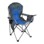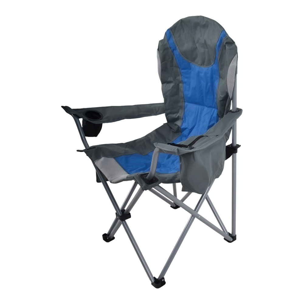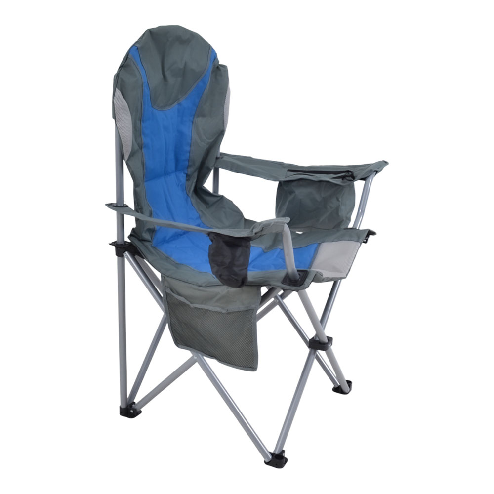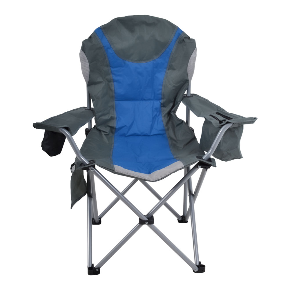 Πτυσσόμενη καρέκλα camping βαρέως τύπου με ανθεκτικό μεταλλικό σκελετό, ιδανική για κάμπινγκ, παραλία ή άλλες υπαίθριες δραστηριότητες. Διαθέτει πρακτική ισοθερμική θήκη στο μπράτσο, ενσωματωμένη θήκη για ποτήρι καθώς και αποθηκευτική τσέπη με δίχτυ στο κάθισμα για μικροαντικείμενα. Ο σκελετός από μεταλλικό σωλήνα διαμέτρου 22mm και πάχους 1.0mm προσφέρει υψηλή σταθερότητα και αντοχή, ενώ το ύφασμα Oxford 600D διπλής ύφανσης με εσωτερική επένδυση αφρώδους υλικού εξασφαλίζει μεγαλύτερη άνεση κατά τη χρήση. Συνοδεύεται από ανθεκτική πολυεστερική τσάντα μεταφοράς.