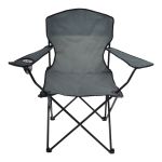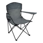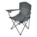 Καρέκλα camping βαρέως τύπου, πτυσσόμενη, με μεταλλικό μαύρο σκελετό από σωλήνα διαμέτρου 16mm και πάχους 1,0mm, ύφασμα oxford 600D σε γκρι χρώμα, θήκη για ποτήρι και τσάντα μεταφοράς με ιμάντα για εύκολη χρήση και αποθήκευση.