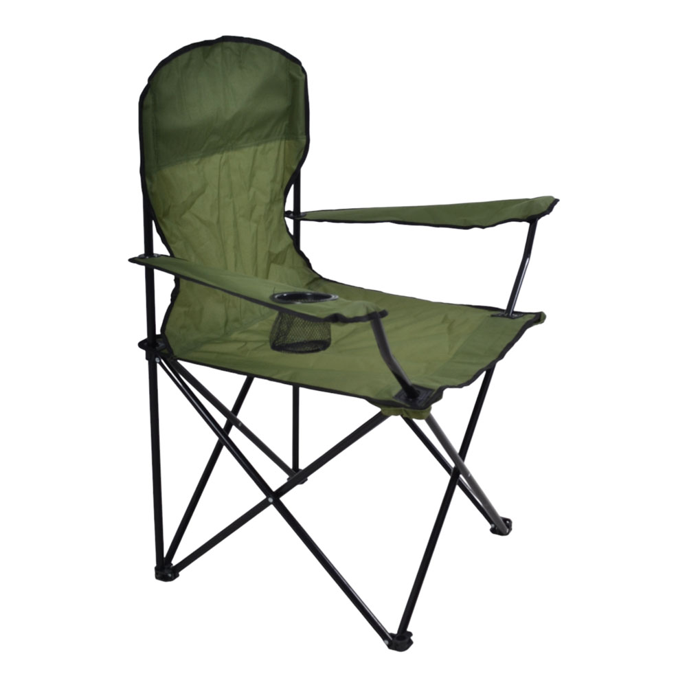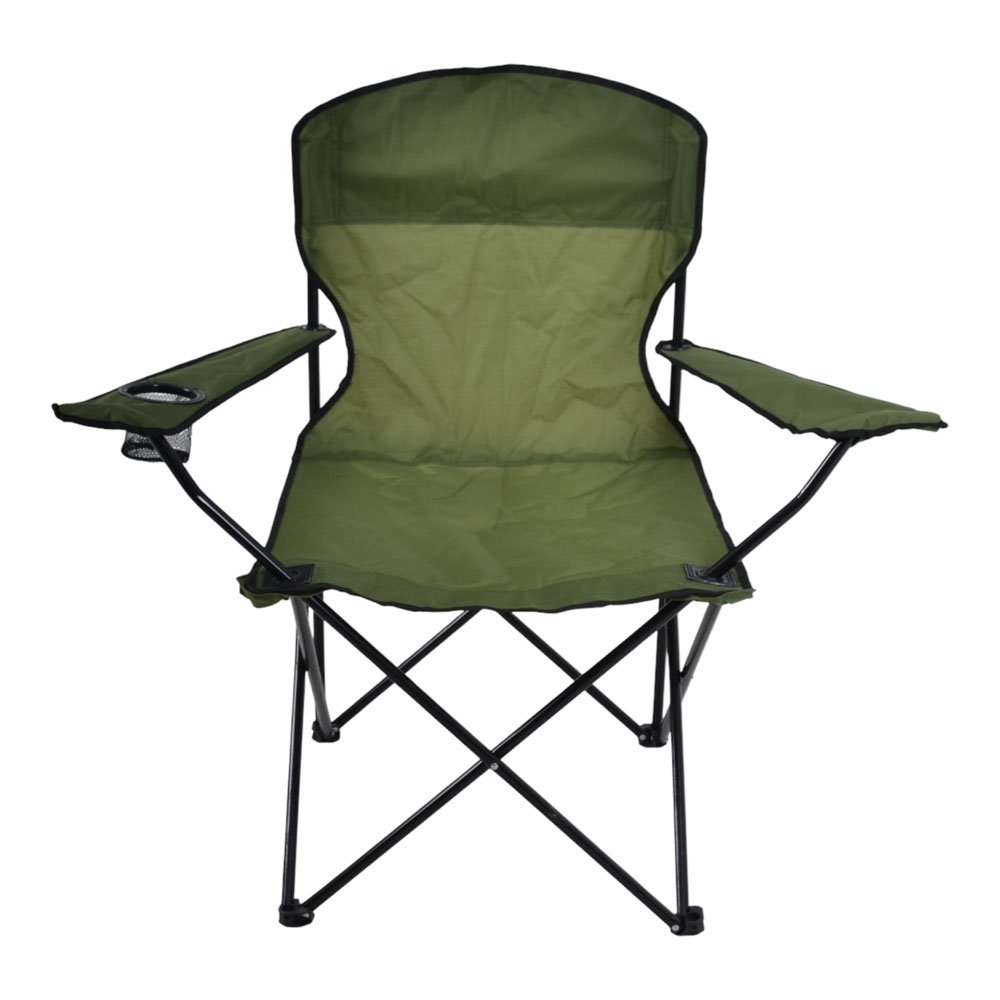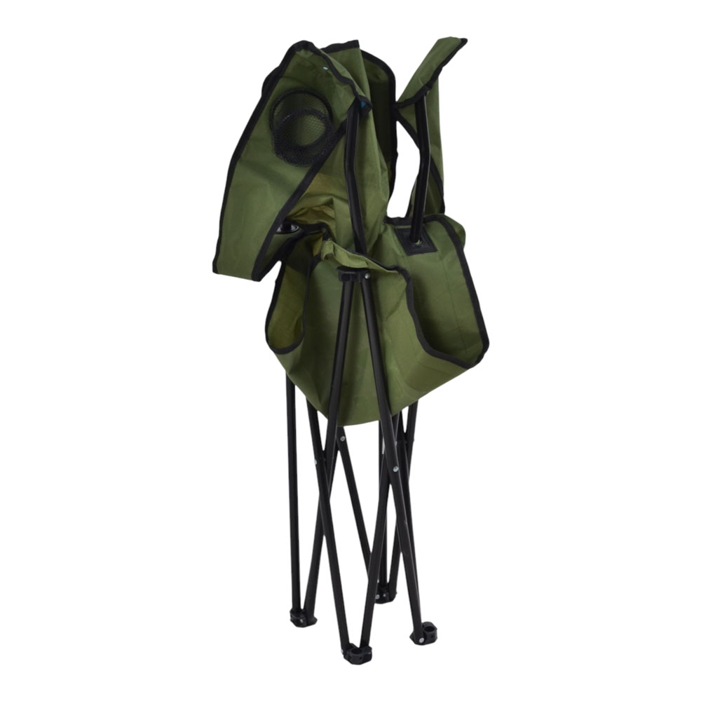 Πτυσσόμενη καρέκλα camping βαρέως τύπου με μεταλλικό σκελετό σε μαύρο χρώμα, ιδανική για κάμπινγκ, παραλία, ψάρεμα ή υπαίθριες δραστηριότητες. Ο ανθεκτικός σκελετός από σωλήνες διαμέτρου 16mm και πάχους 1.0mm προσφέρει υψηλή σταθερότητα και αντοχή στη χρήση, ενώ το ύφασμα Oxford 600D εξασφαλίζει ανθεκτικότητα και άνετο κάθισμα. Διαθέτει πρακτική θήκη για ποτήρι στο μπράτσο, ενώ διπλώνει εύκολα για μεταφορά και αποθήκευση.Συνοδεύεται από πολυεστερική τσάντα μεταφοράς