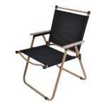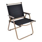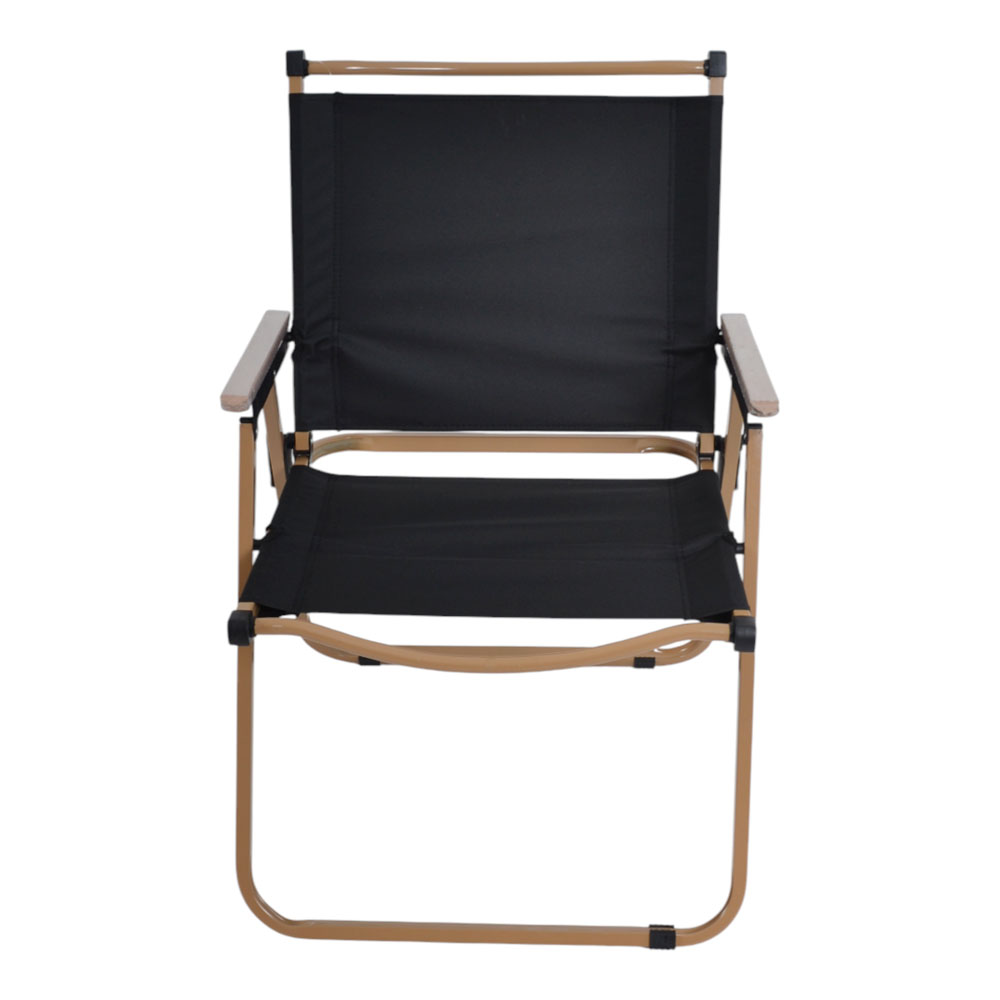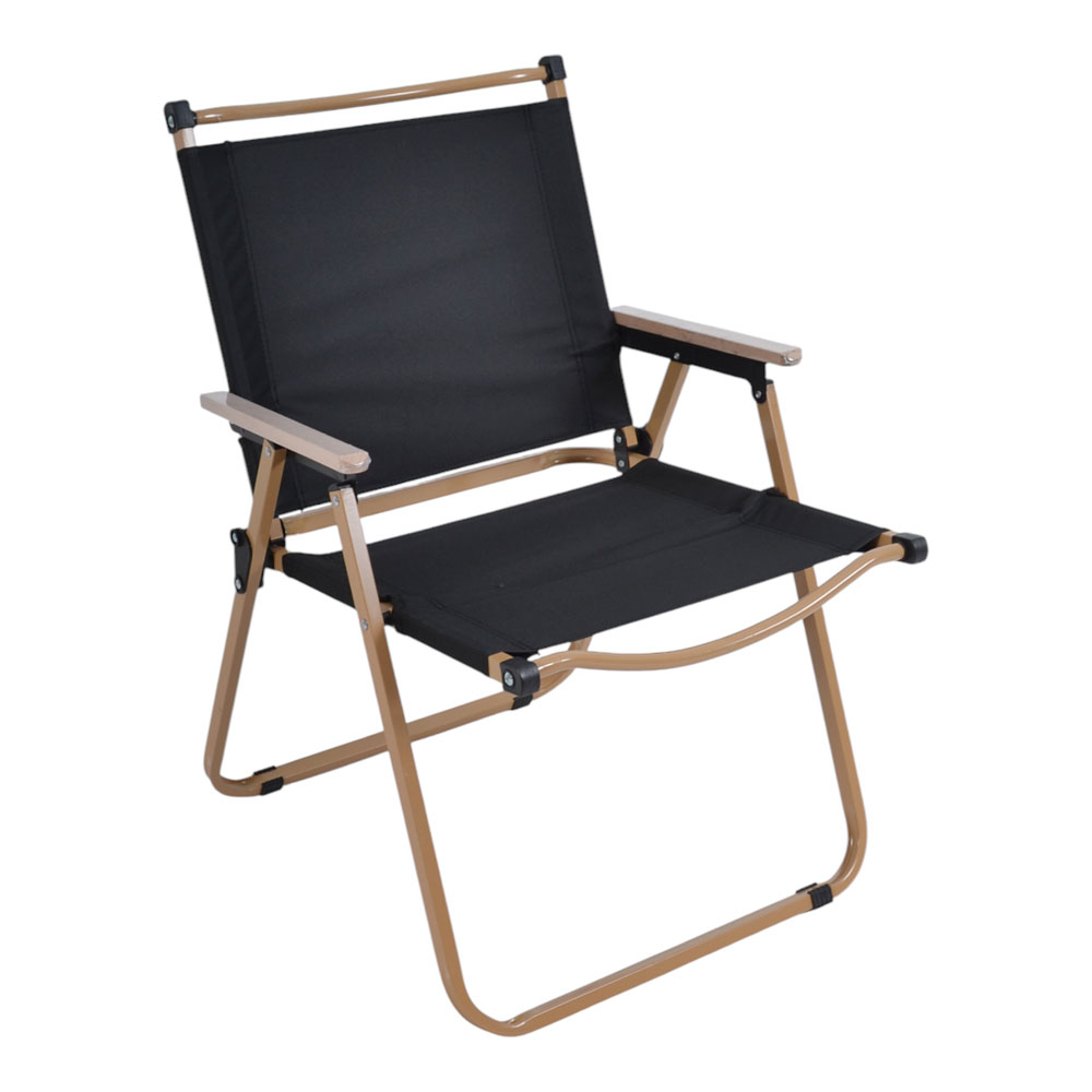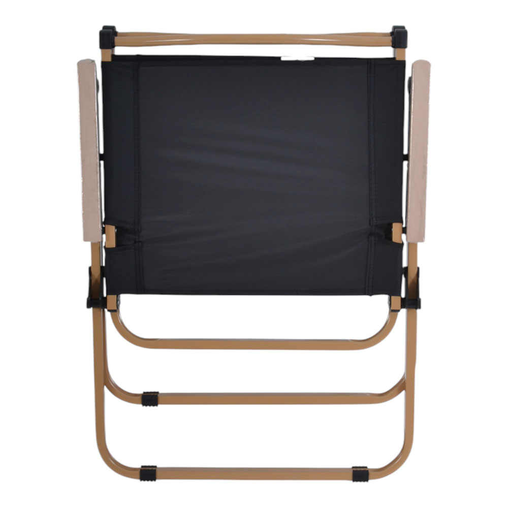 Καρέκλα πτυσσόμενη με μεταλλικό μπεζ σκελετό από σωλήνα 13x13mm και πάχος 1,0mm, επενδυμένη με ανθεκτικό ύφασμα Oxford 600D σε μαύρο χρώμα. Διαθέτει ξύλινη επιφάνεια στα μπράτσα και προσφέρει άνεση και σταθερότητα.