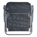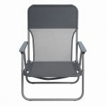 Καρέκλα παραλίας με ψηλή πλάτη, πτυσσόμενη, με μεταλλικό σκελετό διαμέτρου 18mm και επένδυση από ανθεκτικό ύφασμα textilene 1x1 σε σκούρο γκρι χρώμα. Διαθέτει μπράτσα και ιμάντα μεταφοράς για εύκολη μετακίνηση και αποθήκευση.