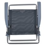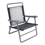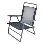 Καρέκλα θαλάσσης μεταλλική, πτυσσόμενη, με σταθερό σκελετό διαμέτρου 22mm και ύφασμα textilene 1x1 σε σκούρο γκρι χρώμα. Διαθέτει αναπαυτικά μπράτσα και ιμάντα μεταφοράς για άνετη και εύκολη μετακίνηση.