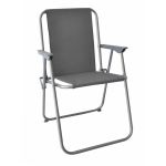 Καρεκλά πτυσσόμενη με μεταλλικό μαύρο σκελετό, σωλήνα διαμέτρου 18mm, πάχος 1,0mm και πολυεστερικό ύφασμα oxford 600D σε γκρι χρώμα.