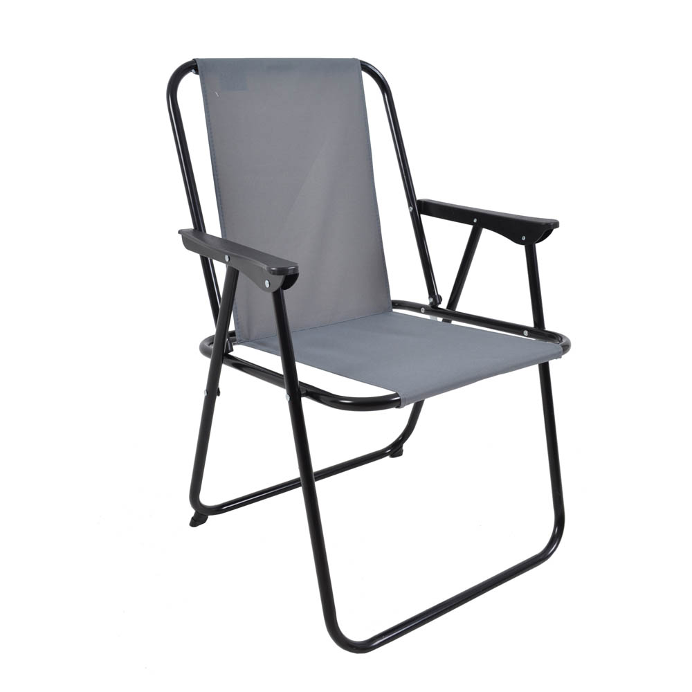 Καρεκλά πτυσσόμενη με μεταλλικό μαύρο σκελετό διαμέτρου 18mm και πάχους 1,0mm, ανθεκτική και σταθερή. Το κάθισμα και η πλάτη είναι επενδυμένα με ύφασμα oxford 600D από πολυεστέρα, ιδανικό για καθημερινή χρήση και εξωτερικούς χώρους. Η ηλεκτροστατική βαφή ενισχύει την προστασία από φθορές και καιρικές συνθήκες, εξασφαλίζοντας μακροχρόνια χρήση. Χάρη στον πτυσσόμενο σχεδιασμό της, αποθηκεύεται εύκολα και μεταφέρεται άνετα, αποτελώντας πρακτική επιλογή για παραλία, κήπο, κάμπινγκ ή εξοχικές δραστηριότητες.