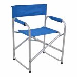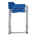 Καρέκλα σκηνοθέτη αλουμινίου πτυσσόμενη με πολυεστερικό ύφασμα oxford 600D σε γαλάζιο χρώμα. Διαθέτει μαξιλαράκια στα μπράτσα για μεγαλύτερη άνεση αλλά και για προστασία από τον ήλιο. Είναι πτυσσόμενη για εύκολη μεταφορά και αποθήκευση.