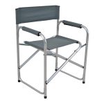 Καρέκλα σκηνοθέτη αλουμινίου πτυσσόμενη με πολυεστερικό ύφασμα oxford 600D σε γκρι χρώμα. Διαθέτει μαξιλαράκια στα μπράτσα για μεγαλύτερη άνεση αλλά και για προστασία από τον ήλιο. Είναι πτυσσόμενη για εύκολη μεταφορά και αποθήκευση.