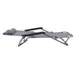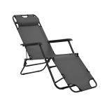 Ξαπλώστρα μεταλλική με μαύρο σκελετό και ύφασμα oxford 600D σε γκρι χρώμα με μαξιλαράκι.Διαθέτει δύο επιλογές ρύθμισης θέσης επιτρέποντάς σας να κάθεστε ή να ξαπλώνετε και είναι πτυσσόμενη για εύκολη μεταφορά και αποθήκευση.