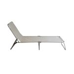 Ξαπλώστρα θαλάσσης με ασημί σκελετό αλουμινίου κ ύφασμα textil σε μπεζ γκρι χρώμα. Διαθέτει 3 επιλογές ρύθμισης θέσης επιτρέποντάς σας να κάθεστε ή να ξαπλώνετε όσο άνετα επιθυμείτε.Είναι πτυσσόμενη για εύκολη μεταφορά και αποθήκευση.Διάμετρος σωλ:22mm