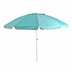 Ομπρέλα παραλίας μεταλλική διαμέτρου 2,25m, με 10 ακτίνες, από πολυεστερικό ύφασμα υψηλής ποιότητας 140gr/gsm σε τιρκουάζ χρώμα και πολυεστερικό ασημί ύφασμα εσωτερικά, προστασία UV60+ και αεραγωγό για εξαέρωση. Διαθέτει ανάκληση για να προσφέρει μεγαλύτερη σκίαση και ενσωματωμένους κρίκους για στερέωση στο έδαφος με σχοινί. Αποθηκεύεται και μεταφέρεται εύκολα καθώς έχει υφασμάτινη τσάντα μεταφοράς ίδιου χρώματος. Διάμετρος κονταριού 28mm/32mm.