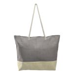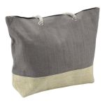 Τσάντα θαλάσσης υφασμάτινη σε γκρι χρώμα και λεπτομέρεια από χρυσή κλωστή στο κάτω μέρος, λαβές από σχοινί, φόδρα εσωτερικά με τσεπάκι κ κλείσιμο με φερμουάρ για μεγαλύτερη ασφάλεια. Μια κομψή επιλογή για τις καλοκαιρινές σας εξορμήσεις.