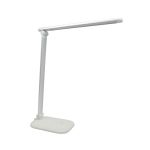 Φωτιστικό γραφείου μεταλλικό αναδιπλούμενο σε λευκό χρώμα και διακόπτη αφής. Διαθέτει ενσωματωμένη led λάμπα μέγιστης ισχύος 5W, διακόπτη αφής για αυξομείωση της έντασης του φωτός, usb για υπολογιστή και αντάπτορα για πρίζα.