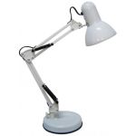 Φωτιστικό γραφείου μεταλλικό σε άσπρο χρώμα, ρυθμιζόμενο διπλό βραχίονα και περιστρεφόμενη κεφαλή. Τύπος λαμπτήρα Ε27.