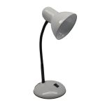 Φωτιστικό γραφείου μεταλλικό σε γκρι χρώμα με μαύρο βραχίονα, περιστρεφόμενη κεφαλή και διακόπτη on/off στη βάση. Τύπος λαμπτήρα Ε27.