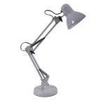 Φωτιστικό γραφείου μεταλλικό σε γκρι χρώμα, ρυθμιζόμενο διπλό βραχίονα και περιστρεφόμενη κεφαλή. Τύπος λαμπτήρα Ε27.