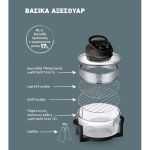 Με την κυκλοφορία ζεστού αέρα κυκλικά ο φούρνος θερμού αέρα έχει πολλές λειτουργίες. Ψήνει σαν φούρνος, ψήνει στη σχάρα, στο grill, φρυγανίζει, ξεπαγώνει, στεγνώνει και αποστειρώνει. Διατηρεί τα θρεπτικά συστατικά και τη φυσική γεύση του φαγητού σας καθώς επίσης εξοικονομεί χρόνο και ενέργεια. Διαθέτει χρονόμετρο 60 λεπτών και ρυθμιζόμενο θερμοστάτη έως 250 βαθμούς Κελσίου. Η συσκευασία περιλαμβάνει το δαχτυλίδι προέκτασης χωρητικότητας 5lt, χαμηλή, ψηλή σχάρα και λαβίδα.