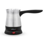 Ηλεκτρικό μπρίκι inox κατάλληλο για ελληνικό καφέ και ζεστό νερό 800W-1000W, διαθέτει διακόπτη λειτουργίας με φωτεινή ένδειξη, καλυμμένη αντίσταση και αποσπώμενη βάση για εύκολη χρήση. Έχει χωρητικότητα 4 φλυτζάνια καφέ. Ωφέλιμο 250ml μέγιστο 400ml.