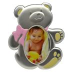 Κορνίζα επάργυρη σε σχήμα ακουδάκι με ροζ φιόγκο
