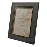 Κορνίζα πλαστική σε σκούρο γκρι χρώμα με σαγρέ όψη, ανάγλυφες γραμμές και χρυσή λεπτομέρεια στο πλαίσιο. Περιστρέφεται δίνοντας τη δυνατότητα τοποθέτησης οριζόντιας ή κάθετης φωτογραφίας και κρεμιέται στον τοίχο.