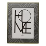 Κορνίζα πλαστική με πλαίσιο σε γκρι χρώμα με διακόσμηση ανάγλυφες γραμμές και χρυσό περίγραμμα. Περιστρέφεται δίνοντας τη δυνατότητα τοποθέτησης οριζόντιας ή κάθετης φωτογραφίας κ κρεμιέται στον τοίχο.
